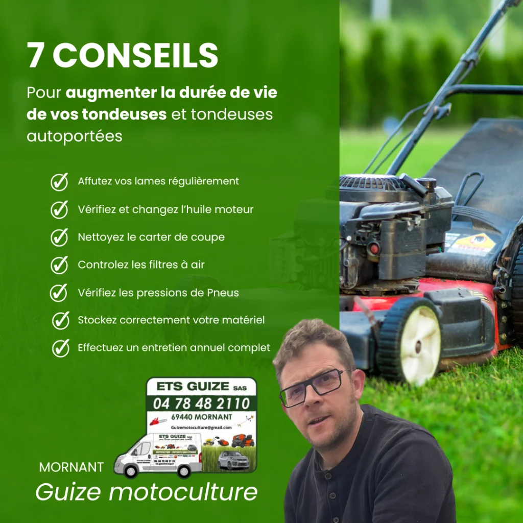 Les 7 Conseils Essentiels pour entretenir vos Tondeuses Chez Guize Motoculture à Mornant